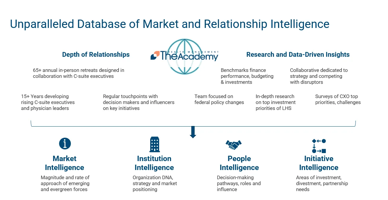 Academy IQ leverages its unique access to market data and C-suite relationships to deliver tailored intelligence for companies innovating in the health system space. Our purpose-built insights for solution companies empower your team to navigate the intricacies of health system decision-making, driving more effective partnerships and faster sales cycles.